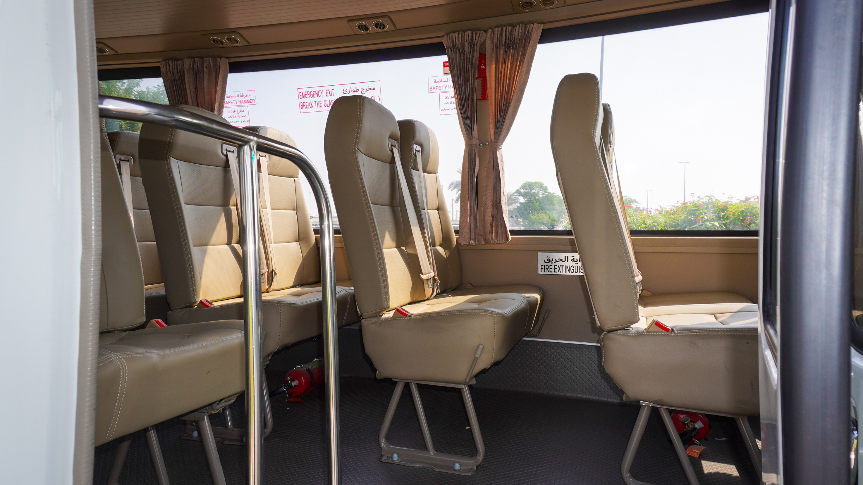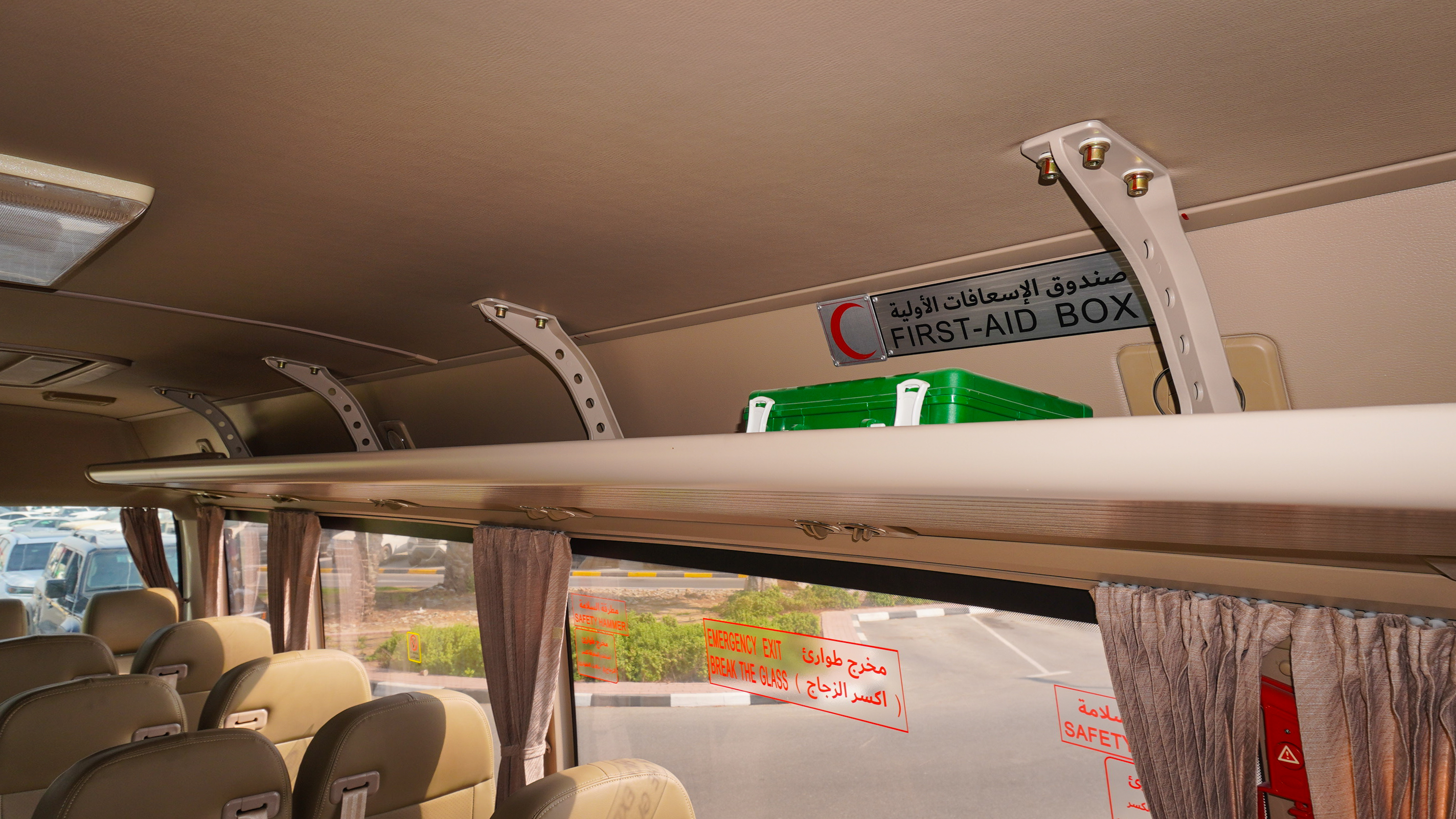 • FIRST AID KIT, SAFETY HAMMERS, AUTO FIRE EXTINGUISHER IN ENGINE COMPARTMENT